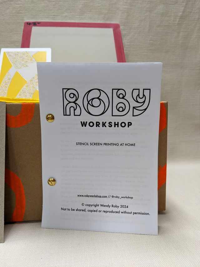 Kit of my recommended tools for at-home screen printing, plus a book that crams about 3 years of my own practice into 27 pages! What’s inside: